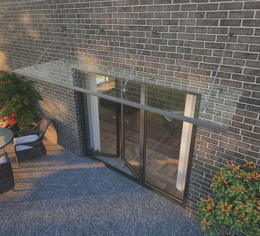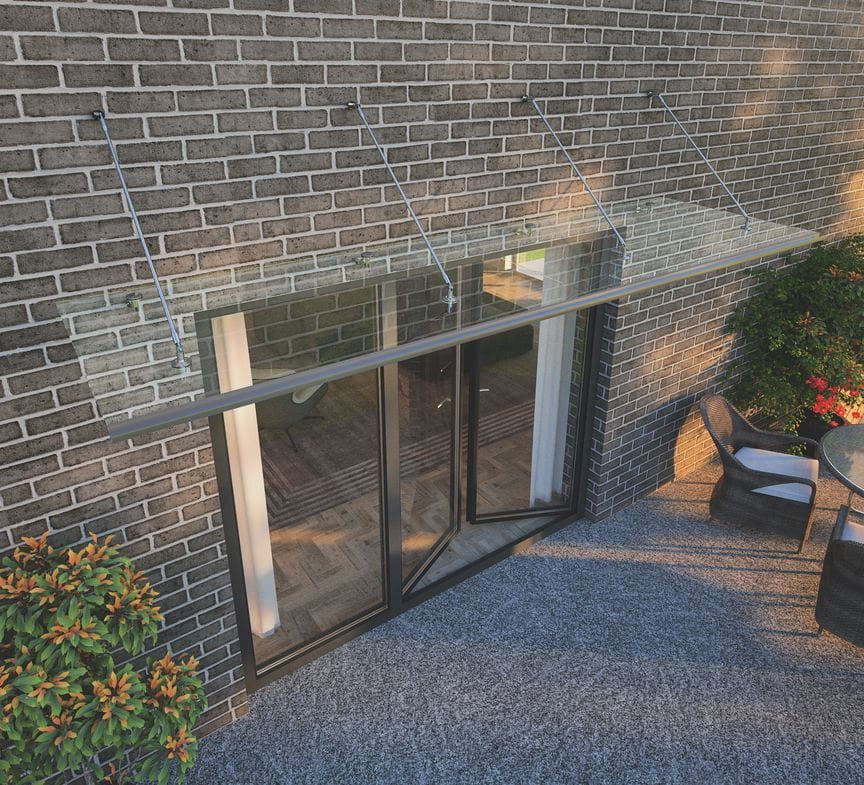 Daszek szklany zadaszenie szklane Quba 220x150 cm z rynną z okapnikiem