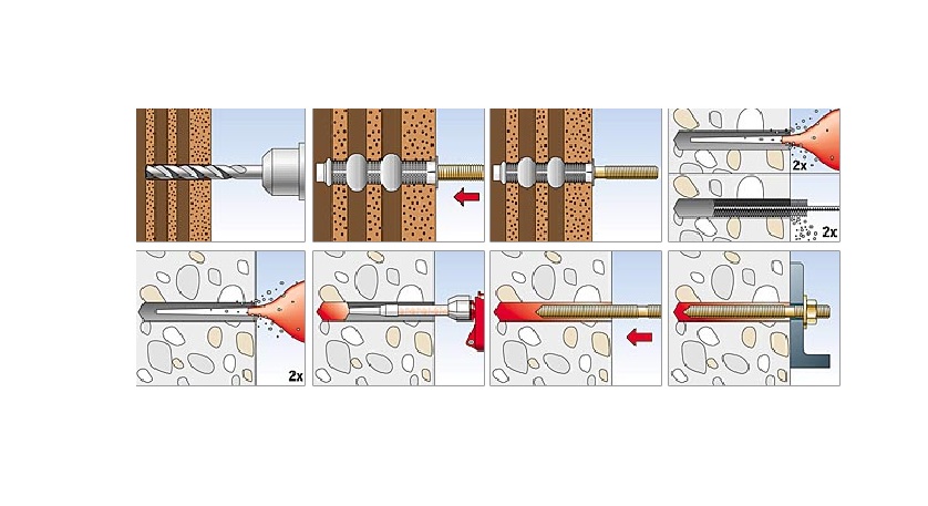 Standardowych łączników rozporowych nie należy stosować do montażu daszków na ścianach z warstwą izolacyjną