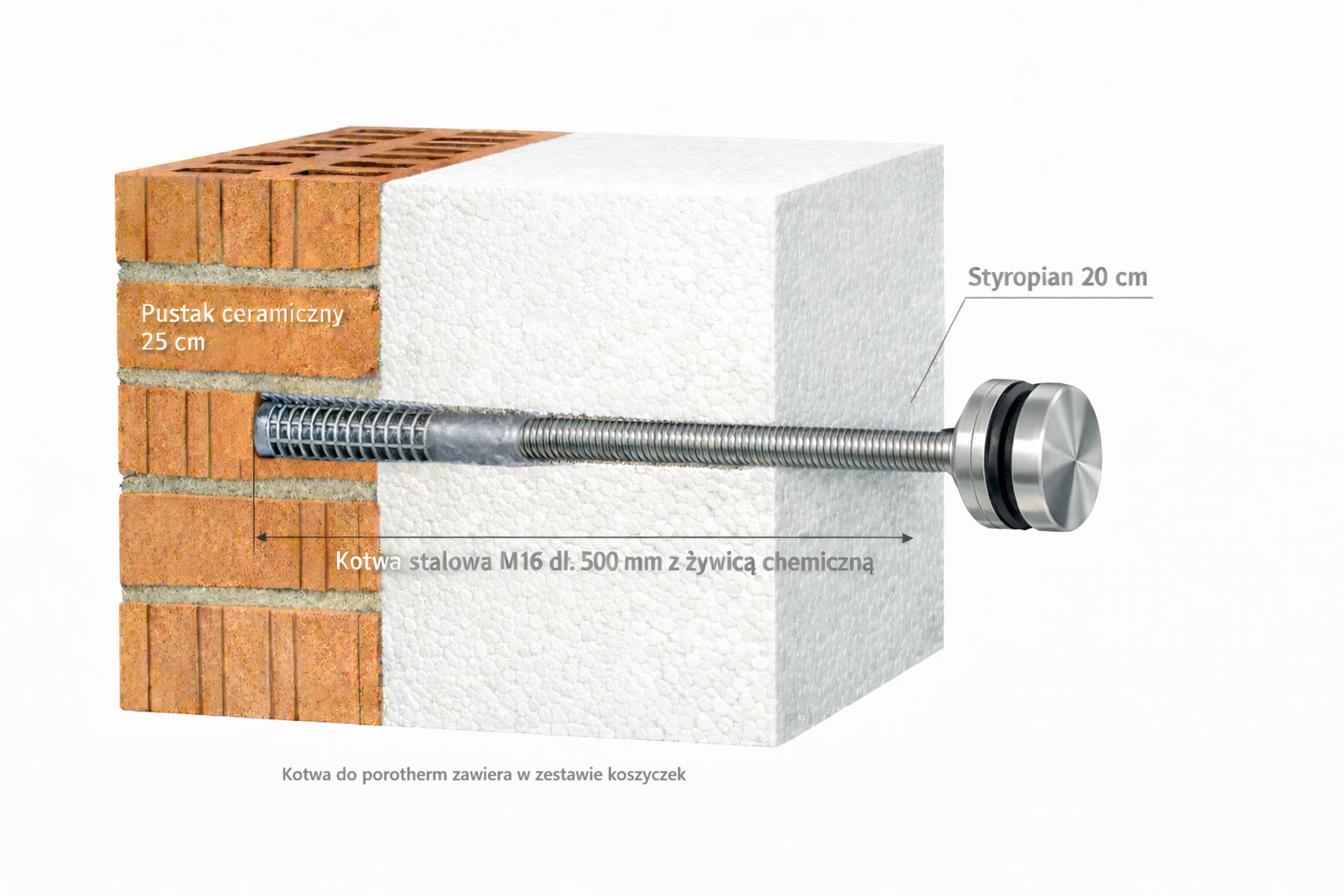- 3 uchwyty ściana-pręt