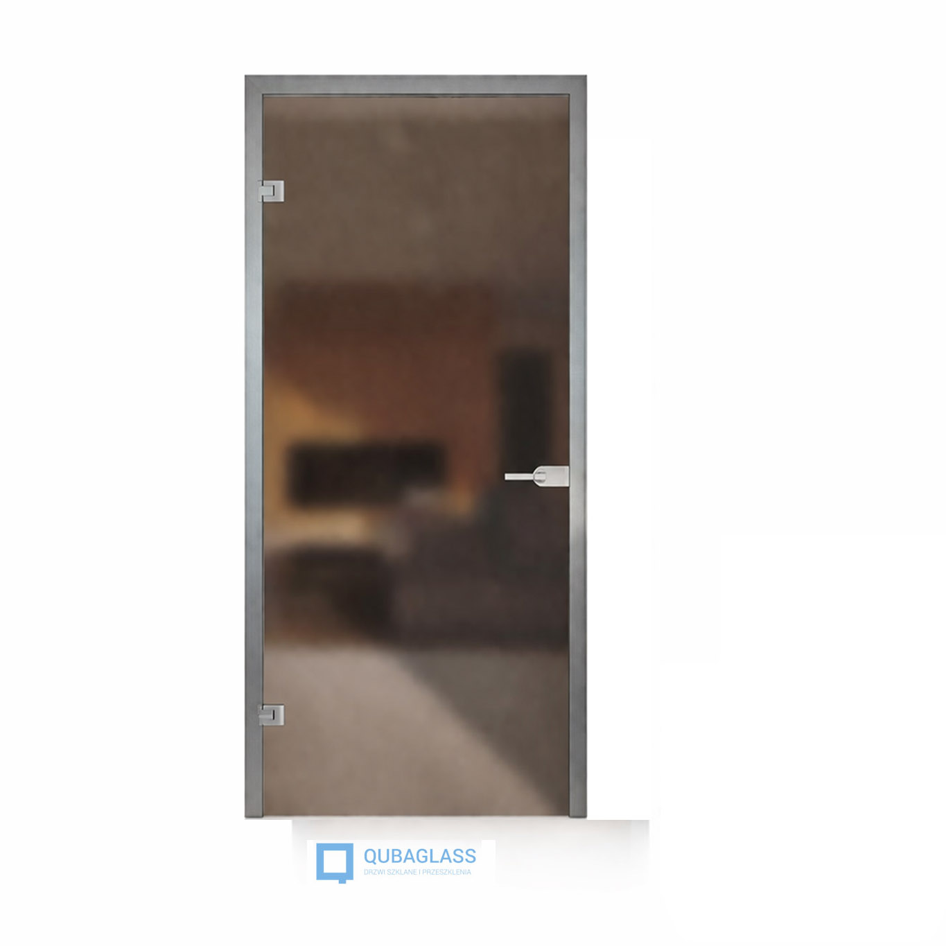 Opis - drzwi szklane otwierane do biura z ościeżnicą aluminiową brązowe matowe