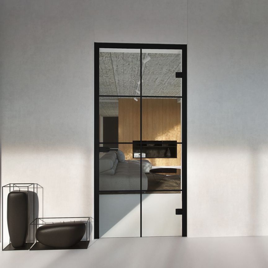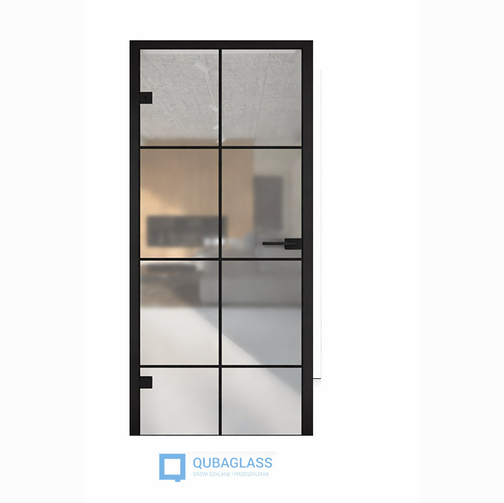 Opis - drzwi szklane otwierane do biura z ościeżnicą aluminiową loft szprosy czarna rama