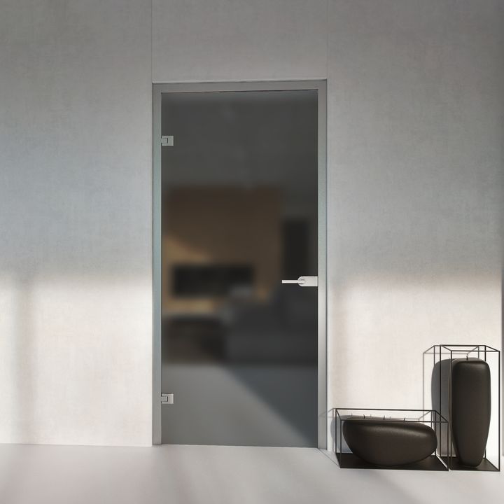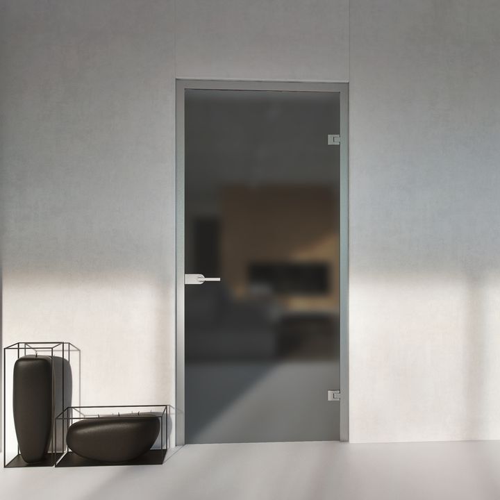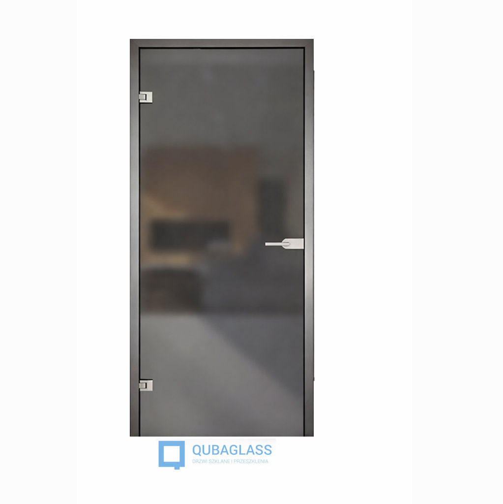 Opis - drzwi szklane otwierane do biura z ościeżnicą aluminiową szkło matowe grafitowe