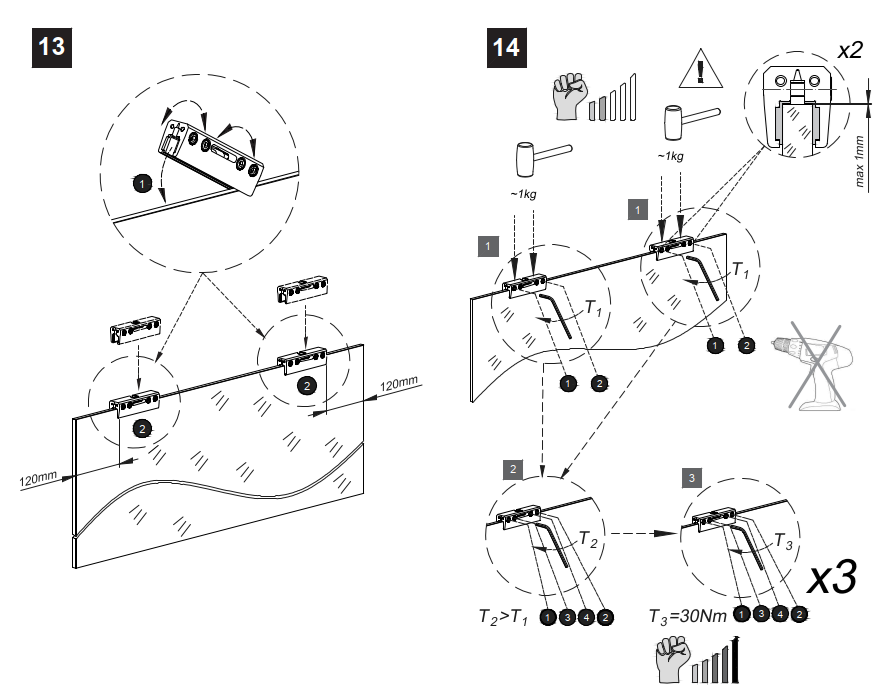 - pewne i bezpieczne mocowanie szkła za pomocą jednoczęściowych zacisków mocujących